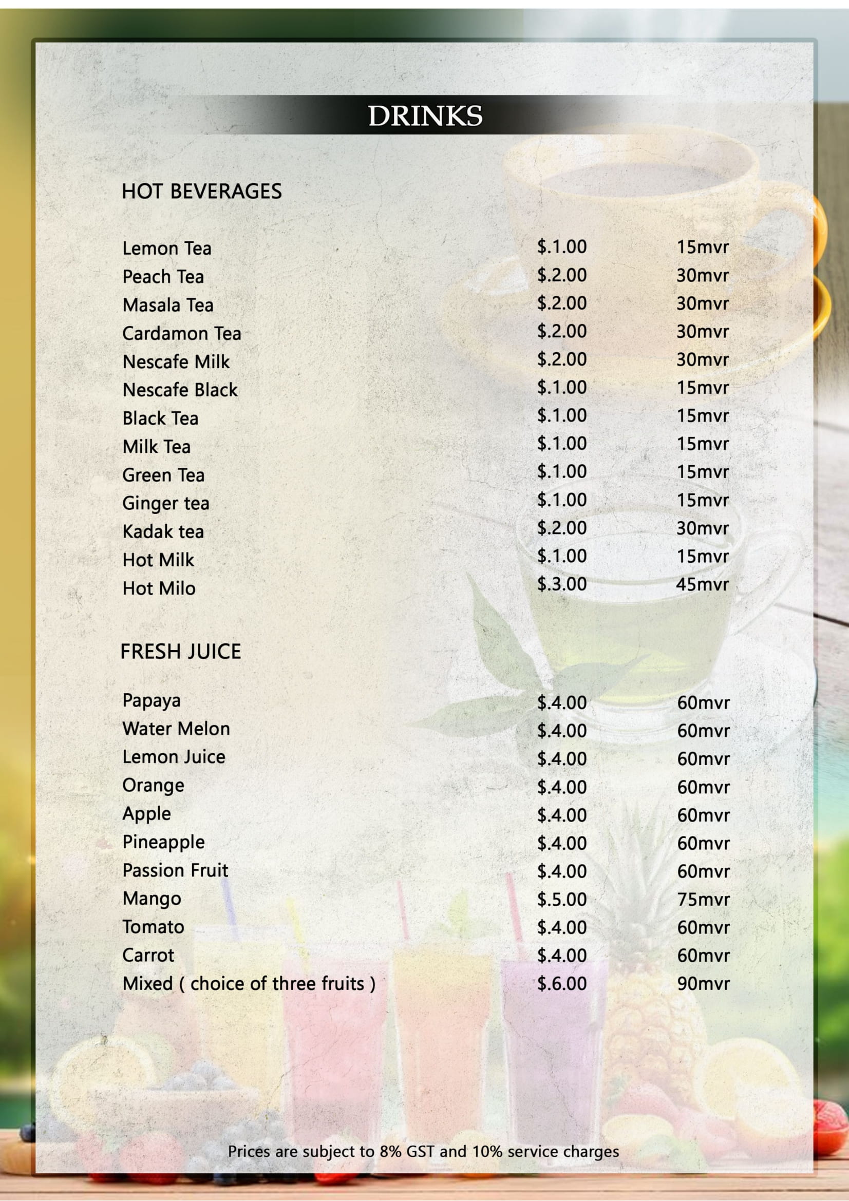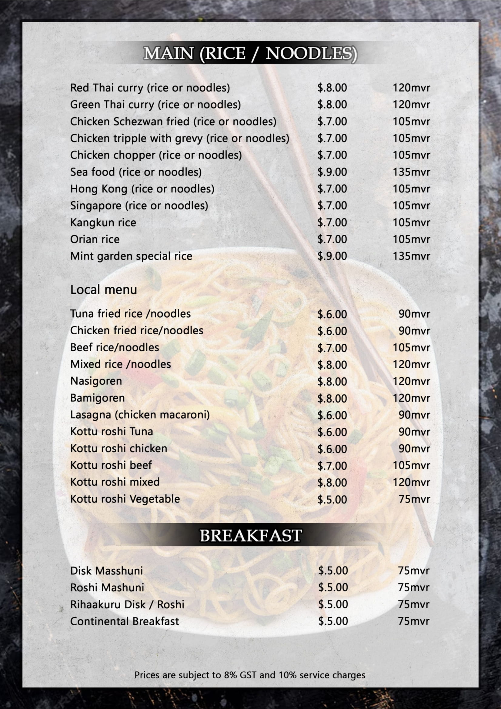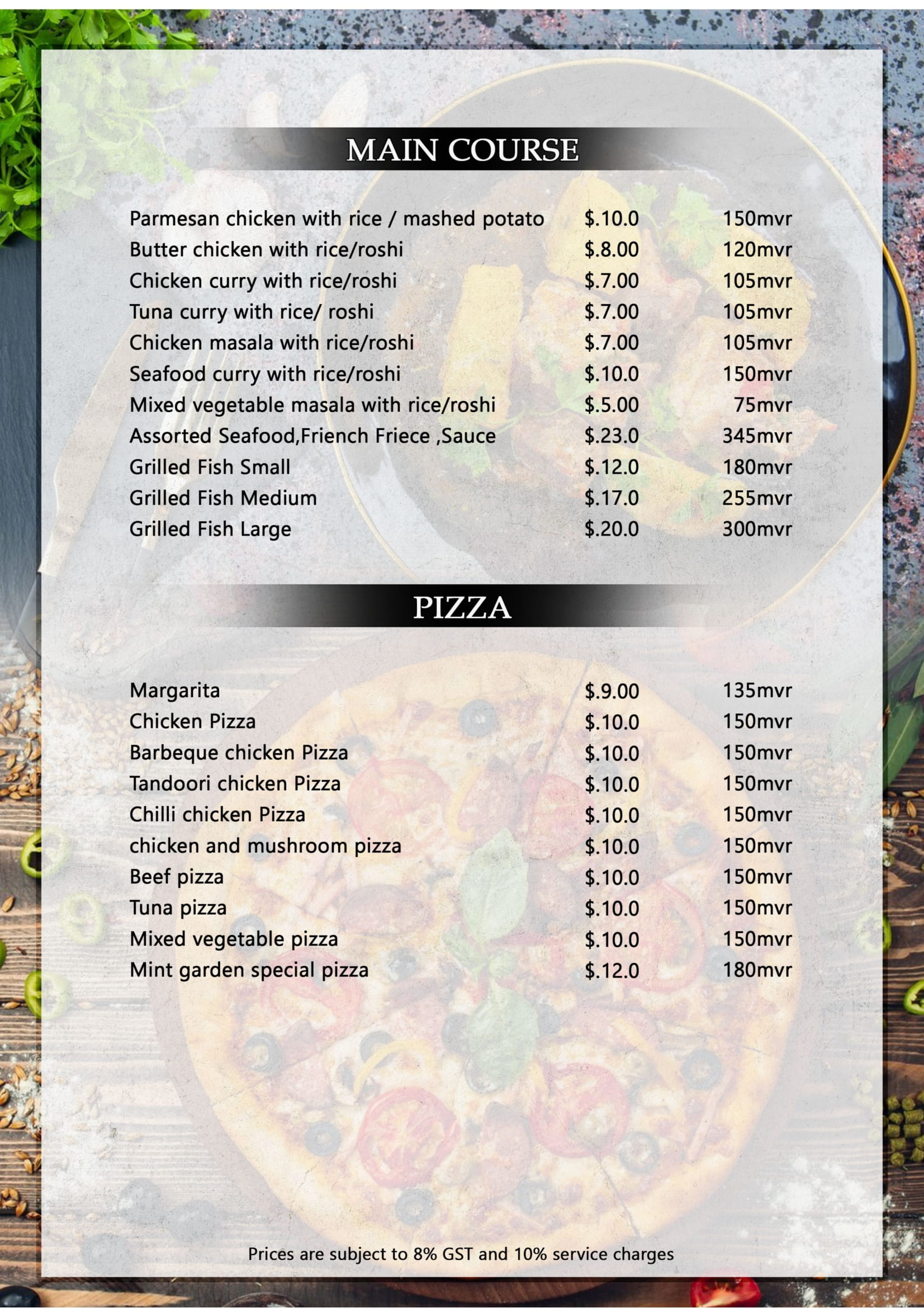 At Mint Garden Restaurant, we bring together the best of Maldivian cuisine and international flavors. Our menu features fresh seafood caught daily by local fishermen, authentic local dishes, and a variety of international favorites.